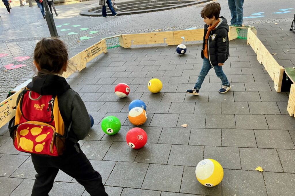 An mehreren Tagen wurde die Ballbande an unterschiedlichen Orten im Stadtgebiet eingesetzt – als offenes Spielangebot direkt im öffentlichen Raum.