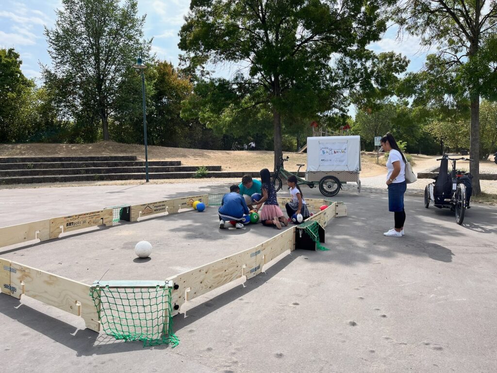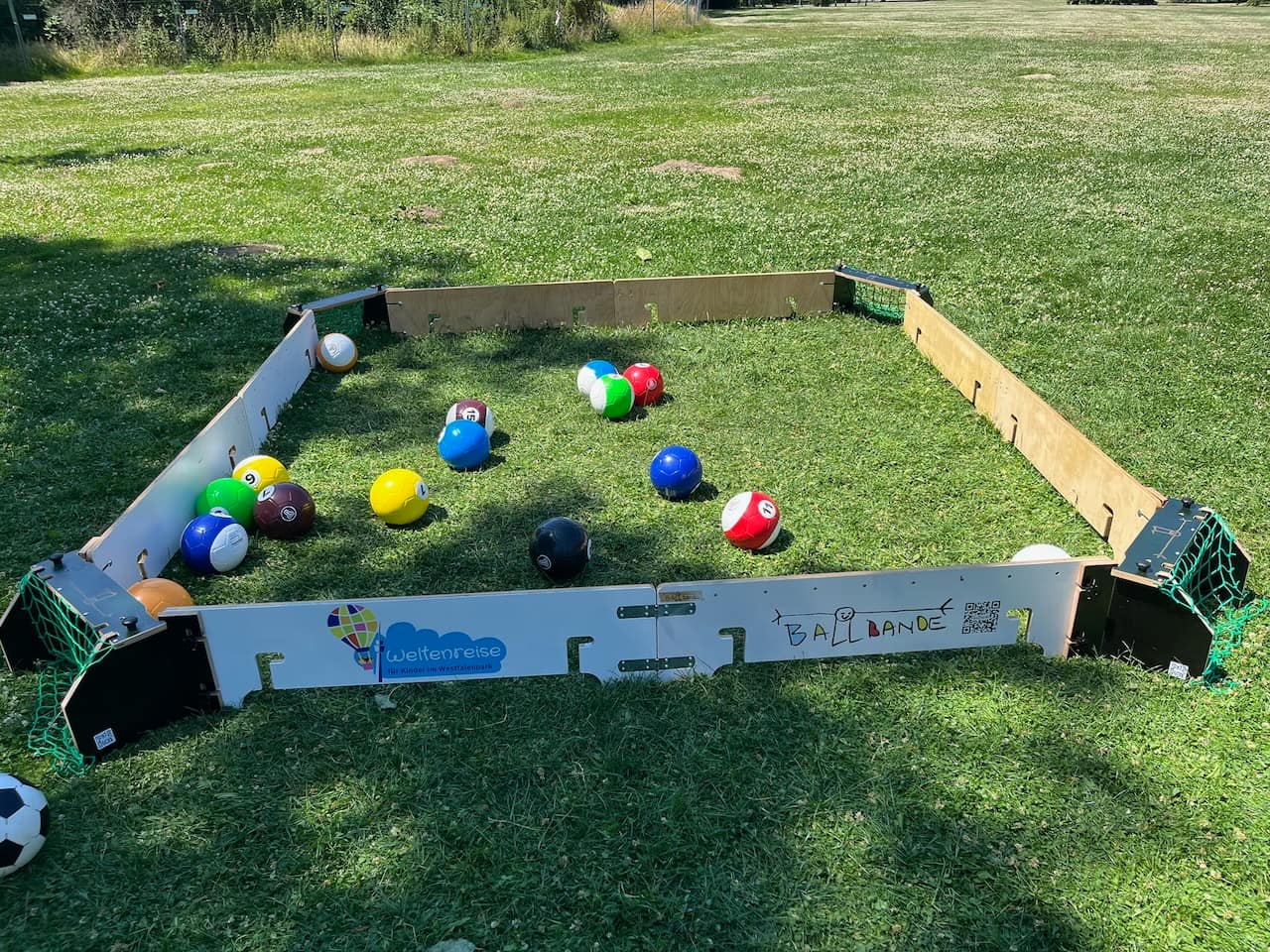 Die Ballbande kann auf unterschiedlichsten Flächen eingesetzt werden – auf Plätzen, Schulhöfen oder Wiesen.